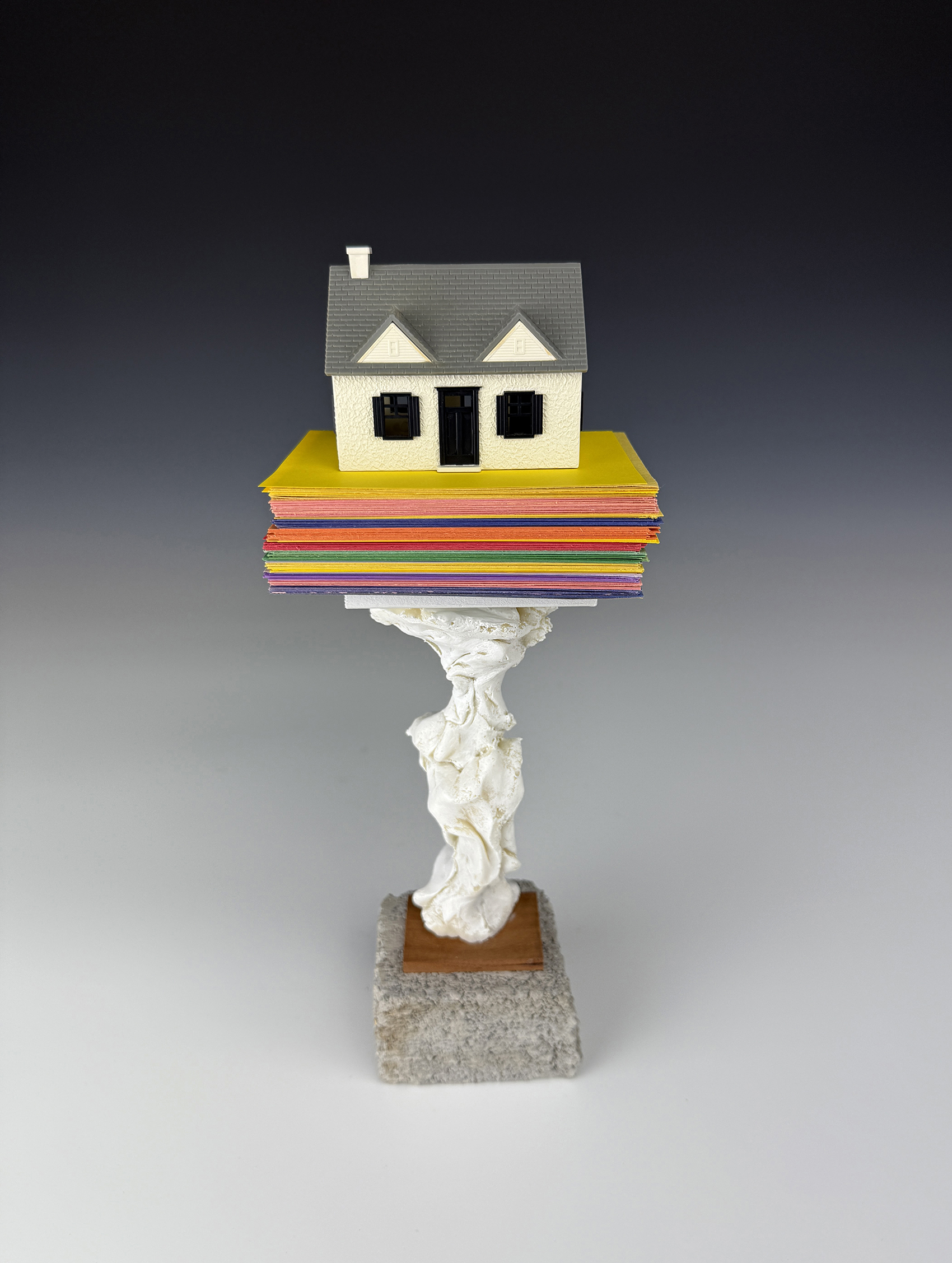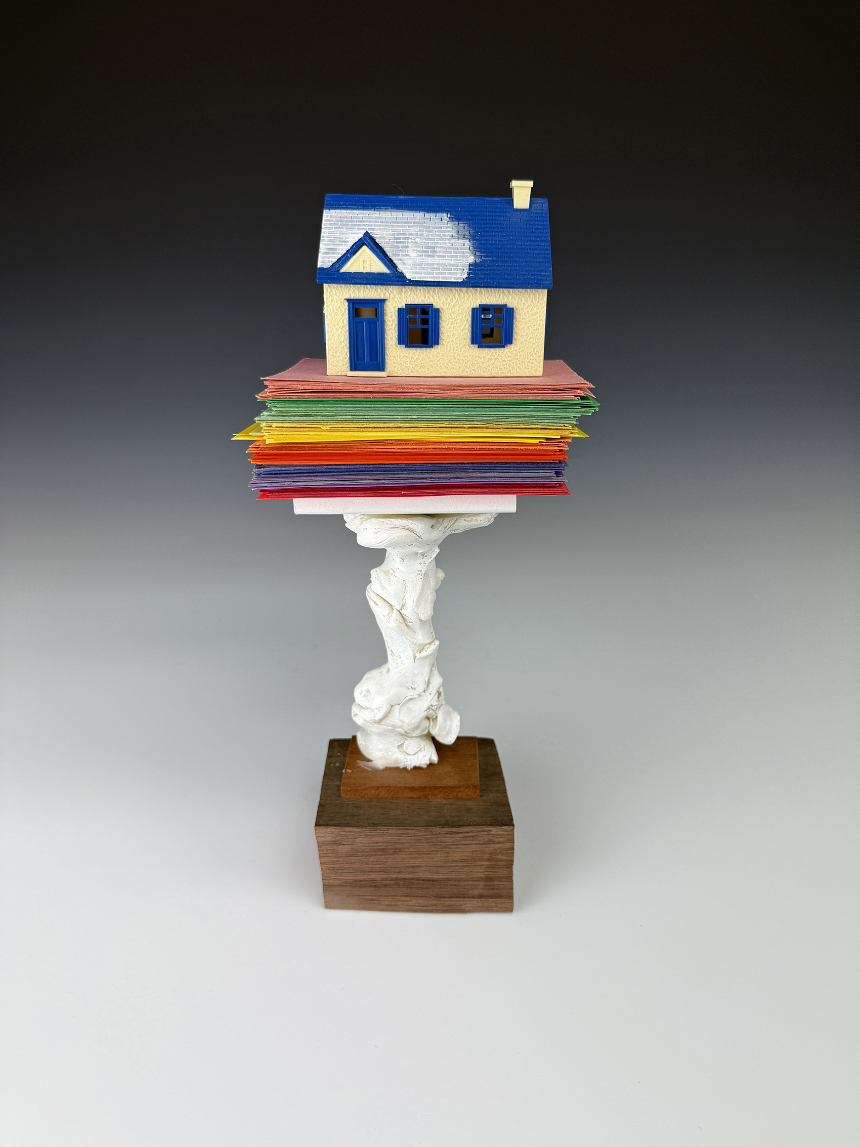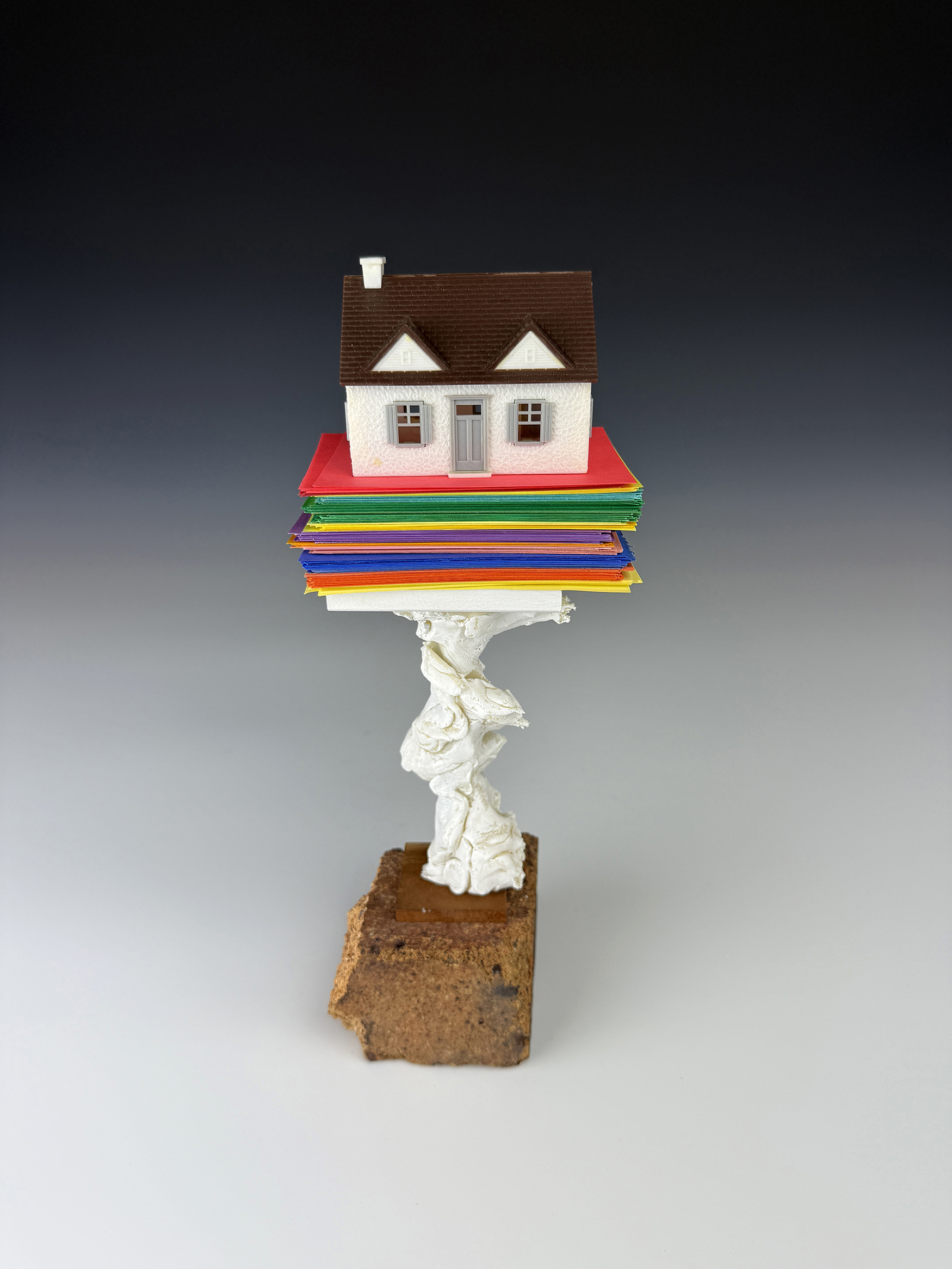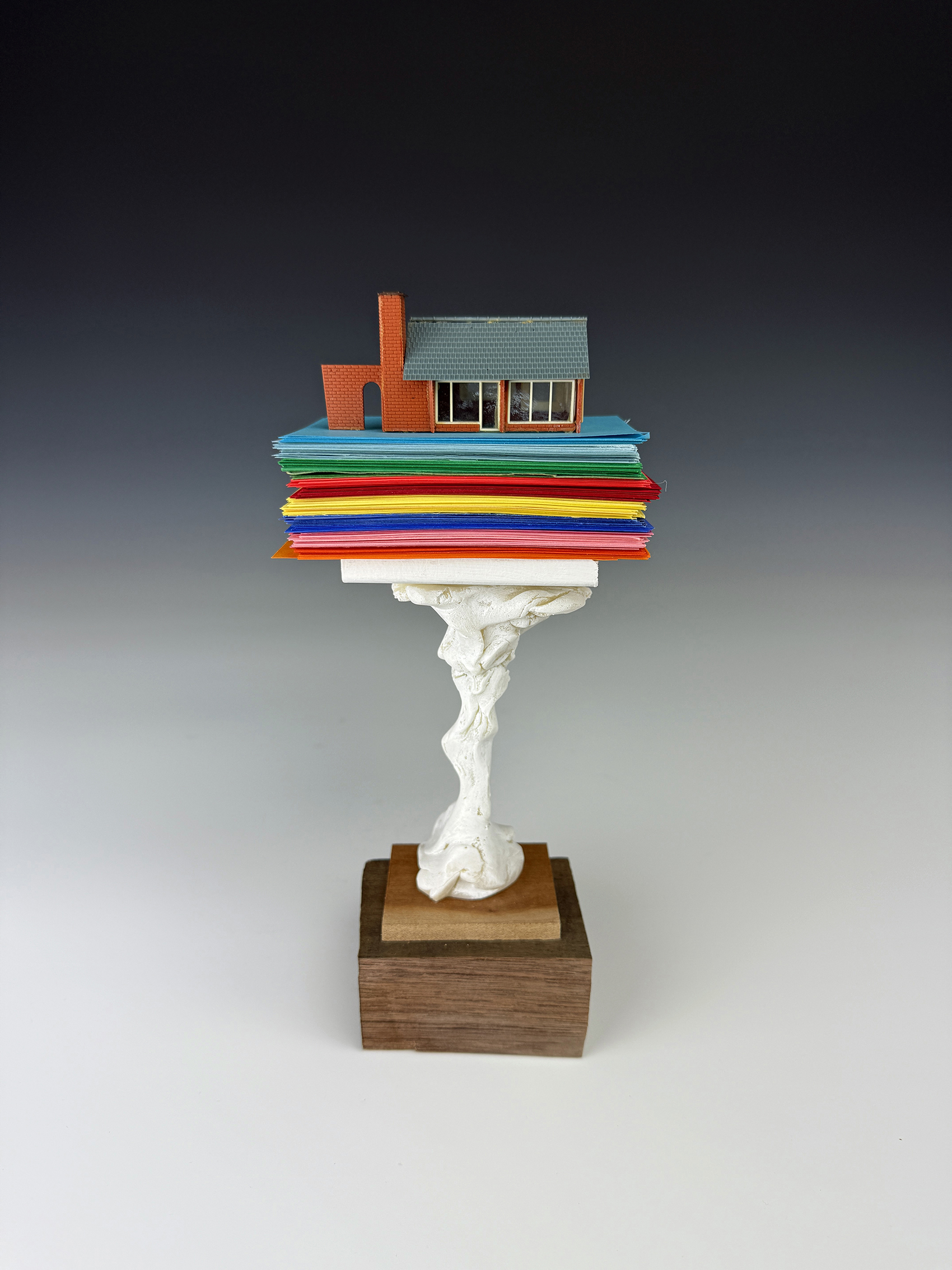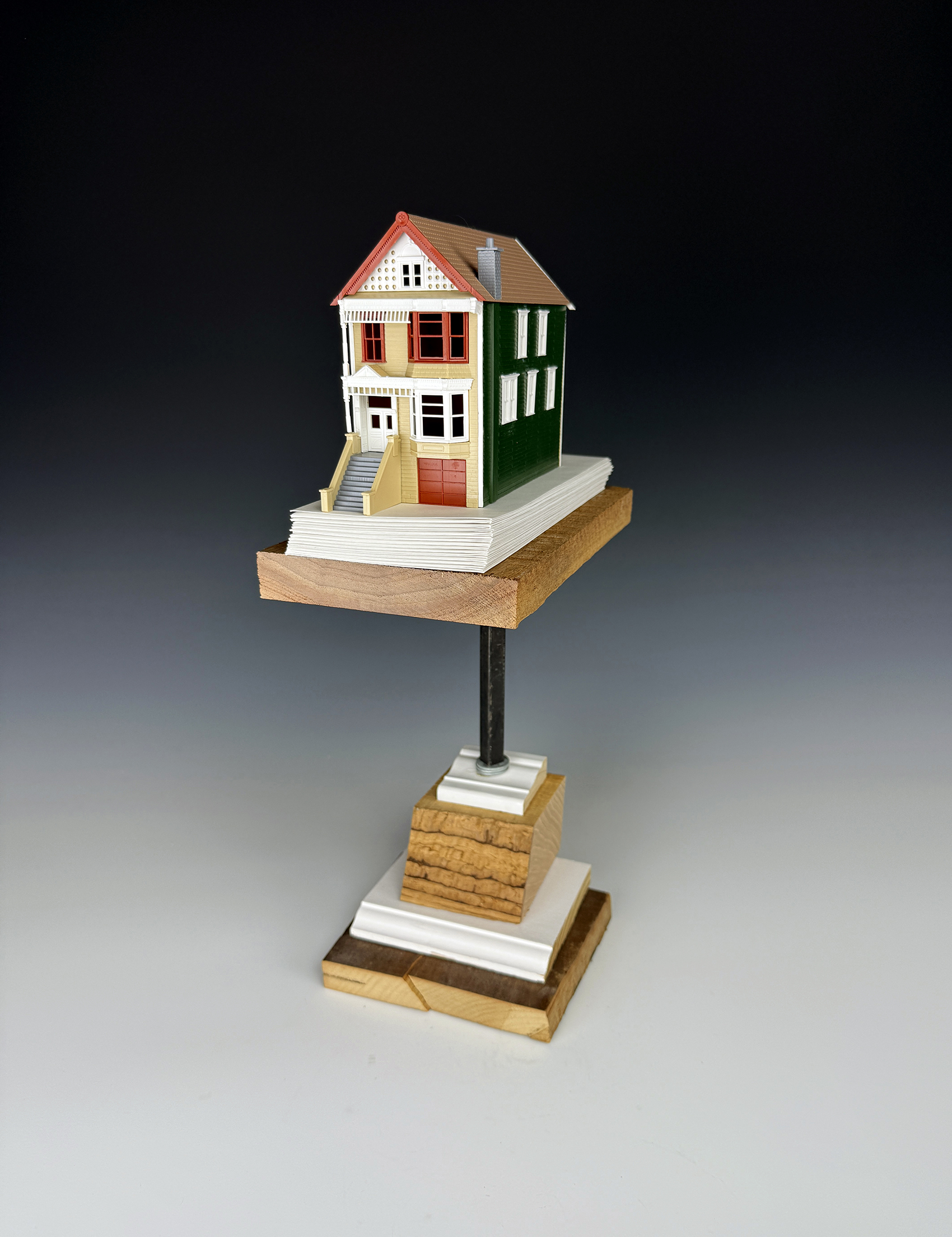 20 Middleground Ave. model building, cardboard, wood, steel, plastic, acrylic, 12.5″ x 4″ x 7″, 2024…