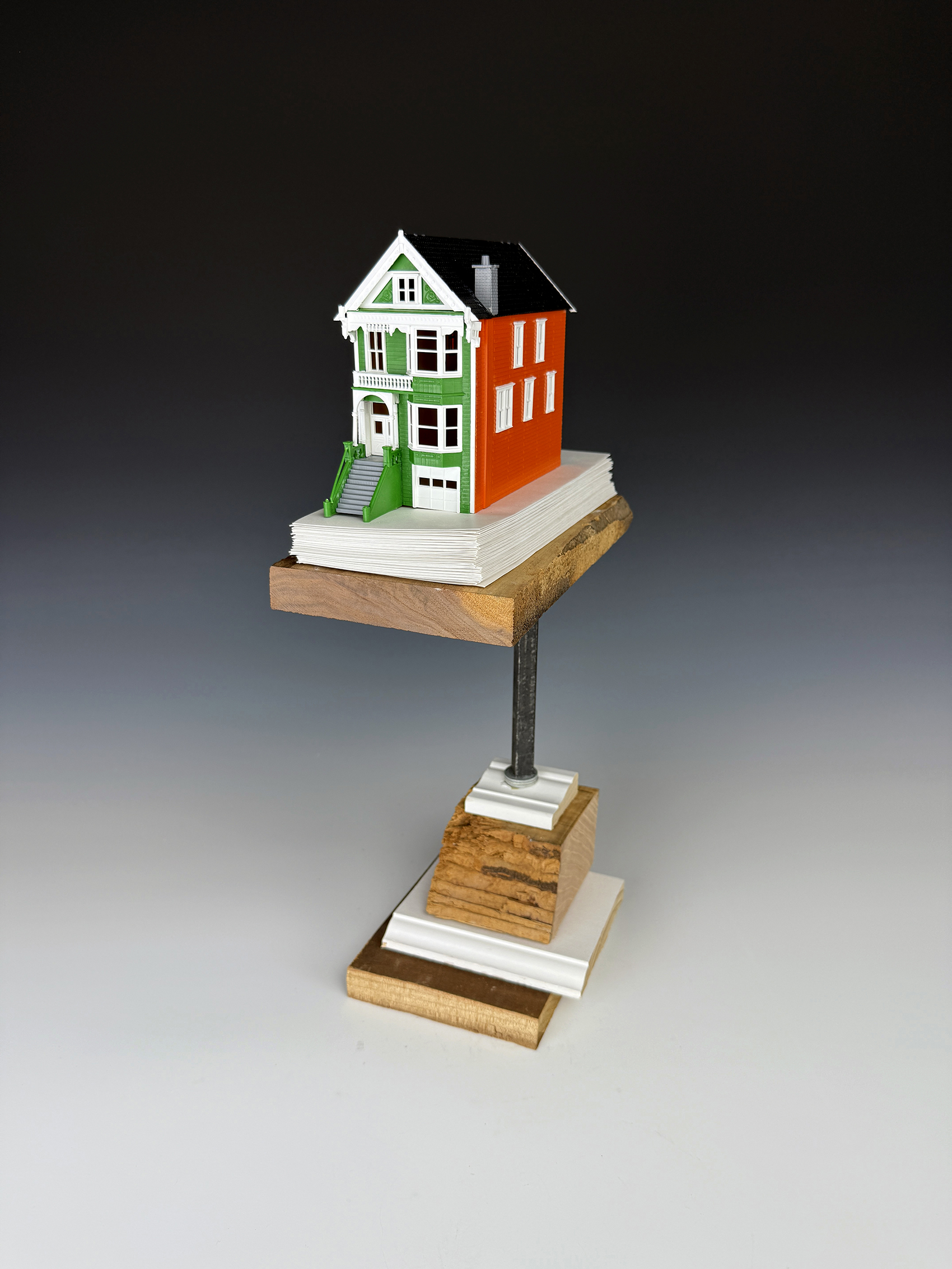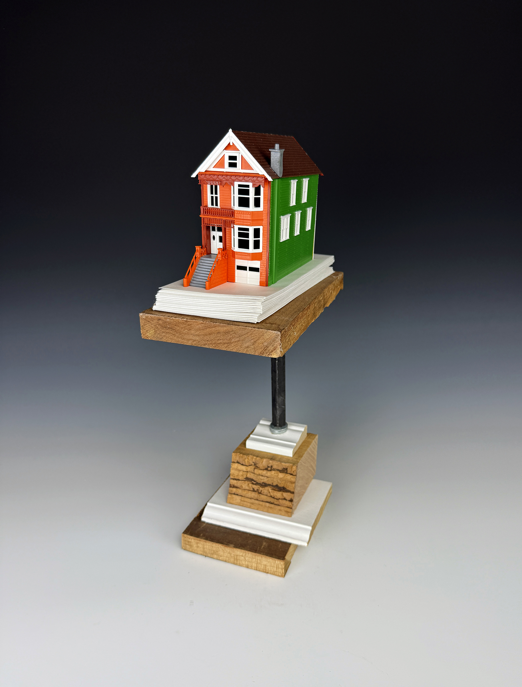 134 Middleground Ave. model building, cardboard, wood, steel, plastic, acrylic, 12.5″ x 4″ x 7″, 2024 …