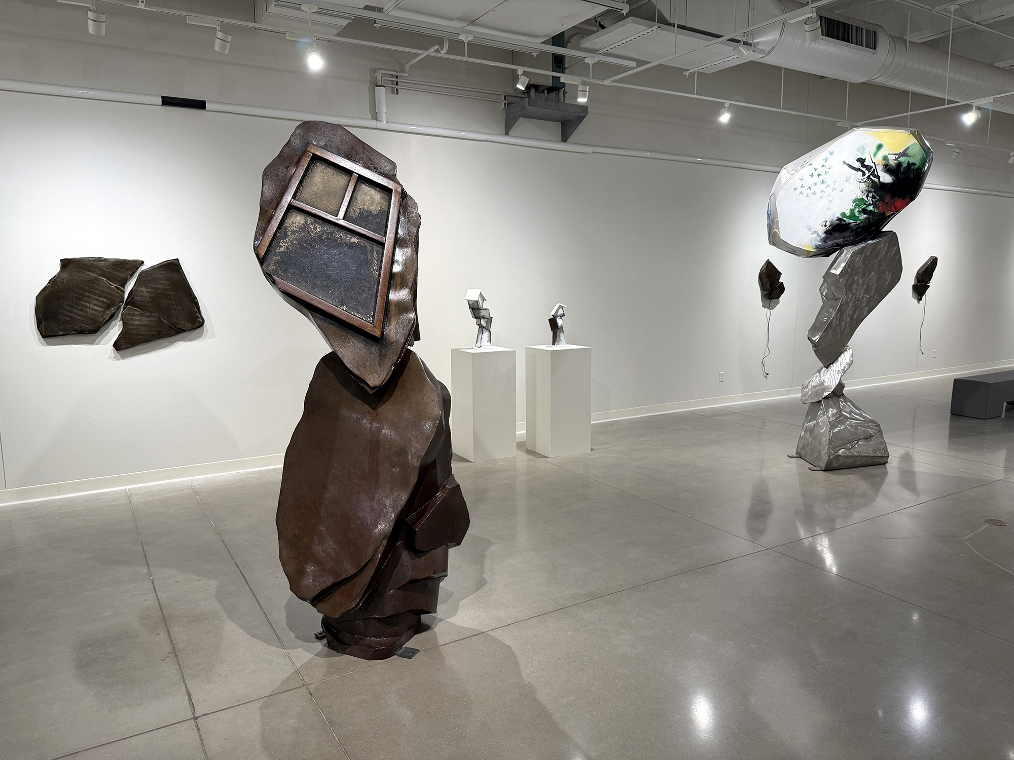 the antiquary collaborative painting with Justin Miller, steel, stainless steel, bronze, and paint, approx. 10’x15’x5′, 2016…