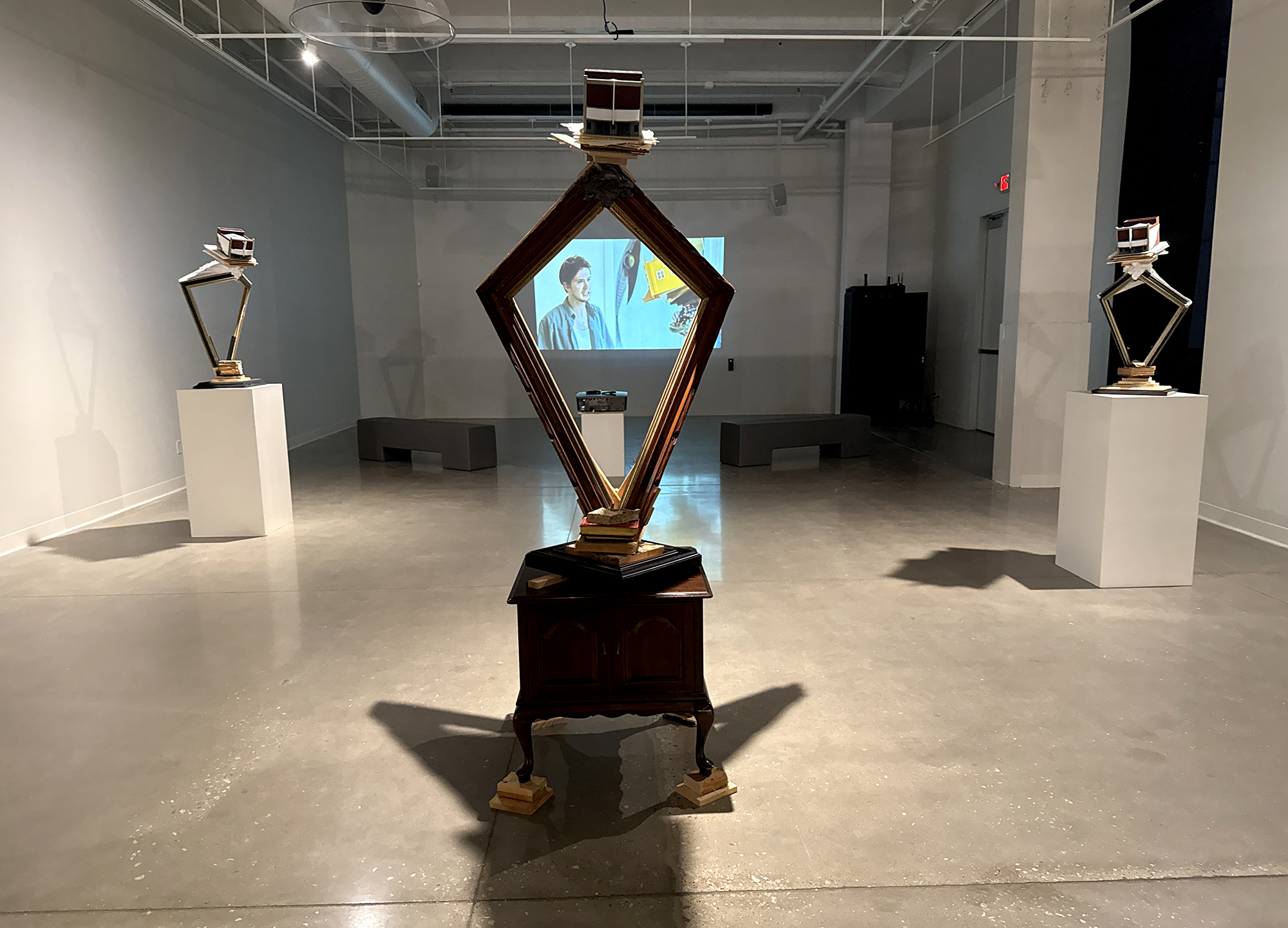 Night of the Living Dead models, cassette tapes, pencil, plastic, epoxy clay, plaster, plywood, fake wood, acrylic, QR codes, audio, audio…